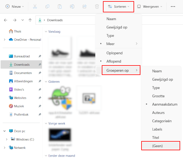 Groeperen op datum uitschakelen in Windows 11 Verkenner